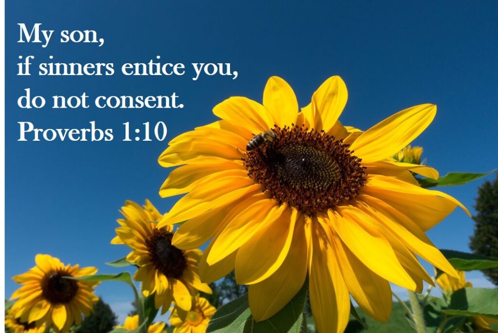 Let’s not forget the timeless truth in Proverbs 1:10: My son, if sinners entice you, do not consent.