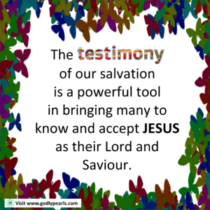 The testimony of our salvation – the grace we received through the sacrifice of Jesus on the cross – is a powerful tool in bringing many to know and accept Him. Sometimes, people need to hear and see examples of lives that have been changed by grace, lives that were destined for destruction but have been redeemed by the blood of Jesus. Our testimony reassures them that redemption is possible, that no one is beyond redemption, that forgiveness is still freely available, and that the power of sin can be broken when a sinner accepts and believes in what Jesus did on the cross.