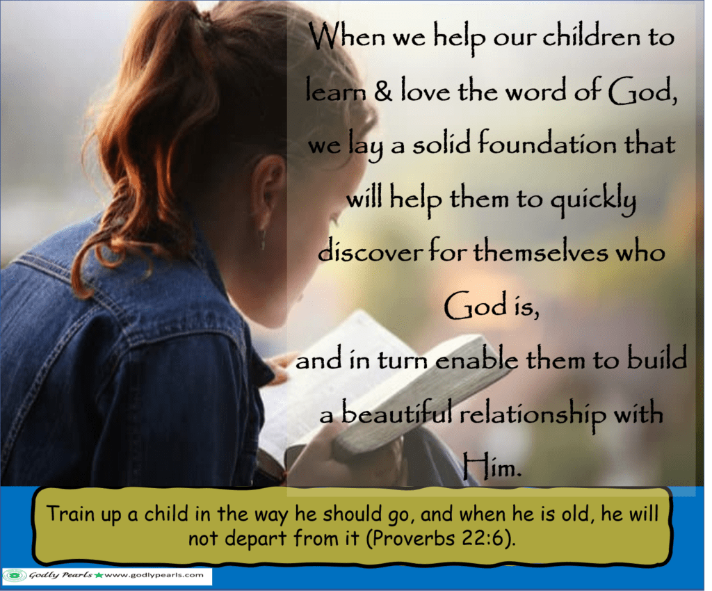When we help our children to learn and love the word of God, we lay a solid foundation that will help them to quickly discover for themselves who God is, and in turn enable them to build a beautiful relationship with Him. Let us rise to the responsibility to “train up a child in the way he should go, and when he is old, he will not depart from it” (Proverbs 22:6).
